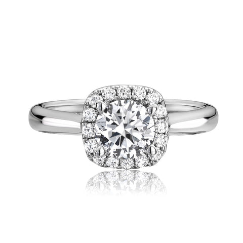 Stunning Scott Kay diamond engagement ring from their Luminaire collection featuring a princess halo consisting of round brilliant cut diamonds weighing 0.33ct total weight. The ring is finished with milgrain details. Designed for a 1CT center stone but can be customized to fit the stone of your choosing. Available in 14kt...