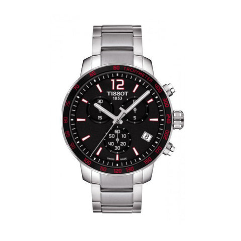 Tissot Quickster Chronograph in stainless steel on stainless steel bracelet. Swiss made Quartz movement. Sapphire crystal. Water resistant to 100m (10 bars). DETAILS DESIGNER: Tissot COLLECTION: Quickster MOVEMENT: Quartz MATERIAL: Stainless steel CASE DIAMETER: 42mm